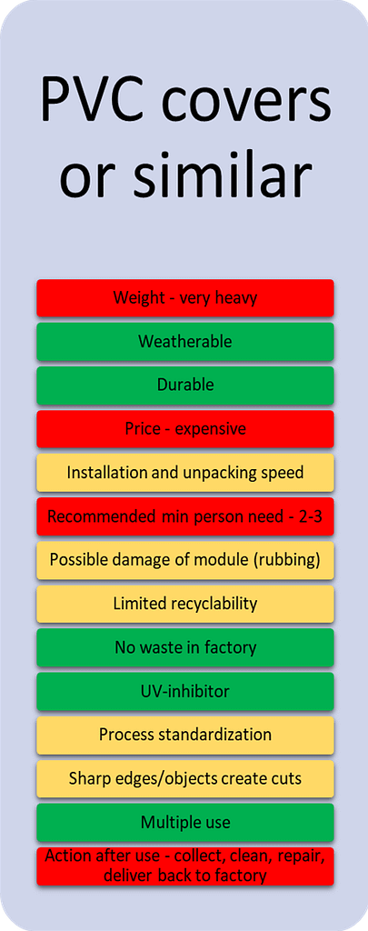 When modules are ready to be shipped out to their destination, it is already too late to ask how we will protect them during transportation and storage. Those points should be pre-planned as a part of your project cycle, as depending on the chosen solution, project costs may be changed just enough to increase your margin by a few points. Improper packing techniques could create delays in sending out the modules, increased crane hours and transportation waiting hours, not to mention the potential of losing your packaging material during transportation and in windy conditions, causing more work and the need for claims handling.